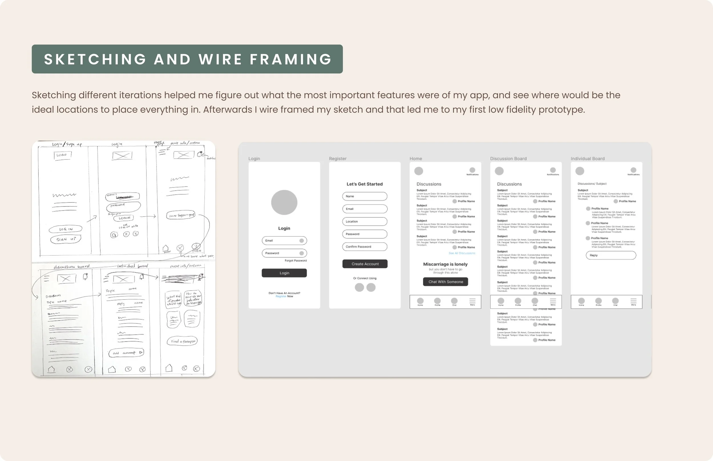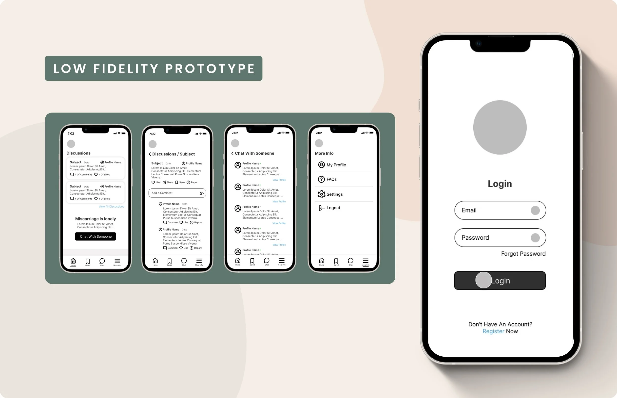After completing a rigorous UX/UI bootcamp at General Assembly, I embarked on my final project: designing an app dedicated to supporting women who have experienced miscarriages—a cause deeply personal to me. Having witnessed friends and personally endured the emotional aftermath, I understand the profound feelings of isolation and depression that often accompany such experiences. Motivated by this empathy, I envisioned an app aimed at fostering connections among women who have shared similar journeys, providing a platform for mutual support and healing.